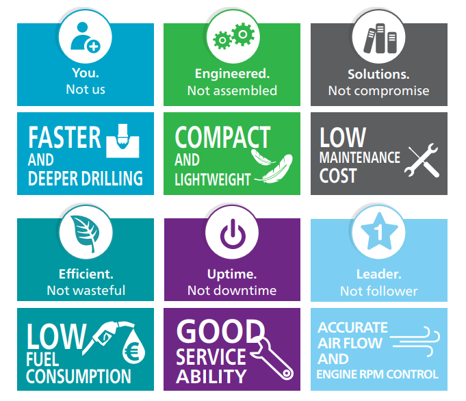 The XR(H/V/X) range of water well drilling compressor is in-line with the Forward-Thinking philosophy of the Portable Energy division: